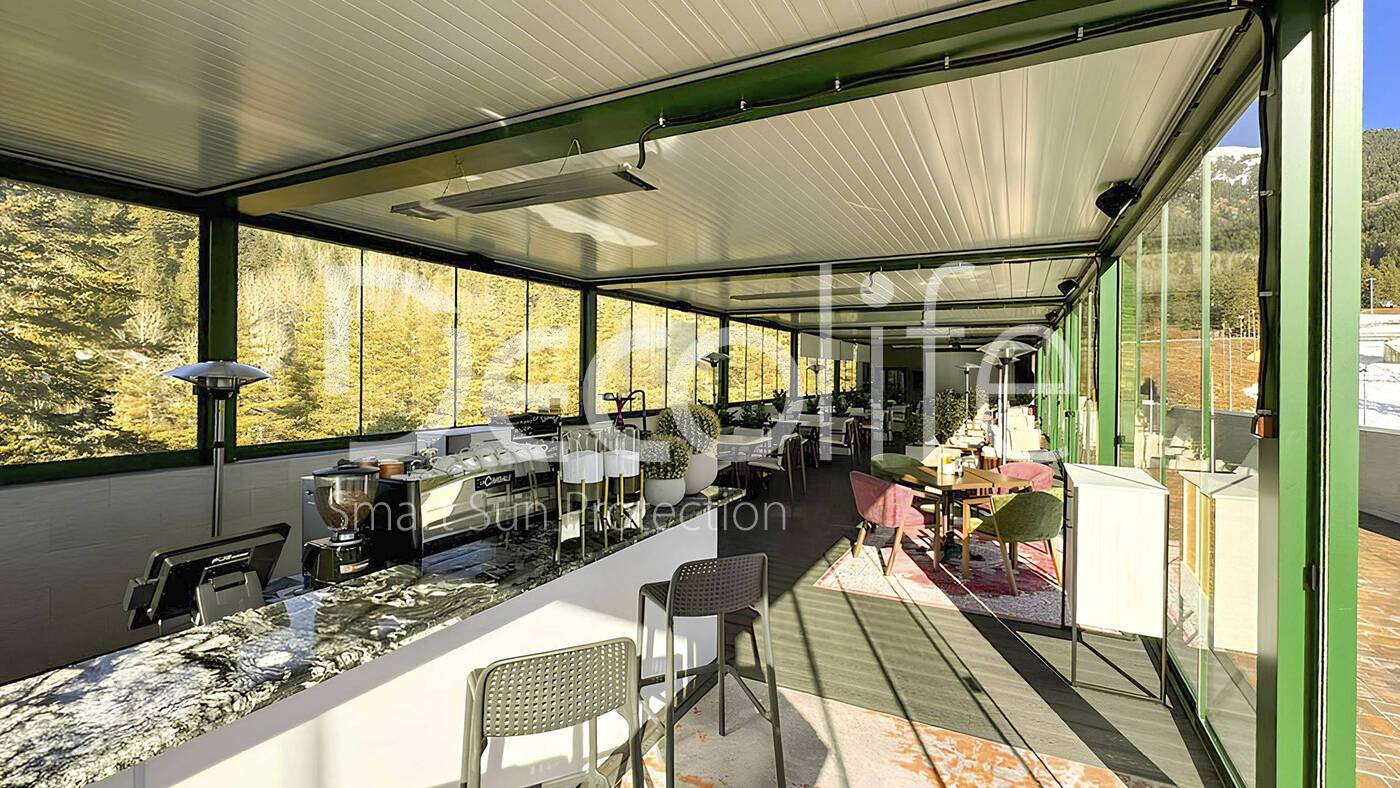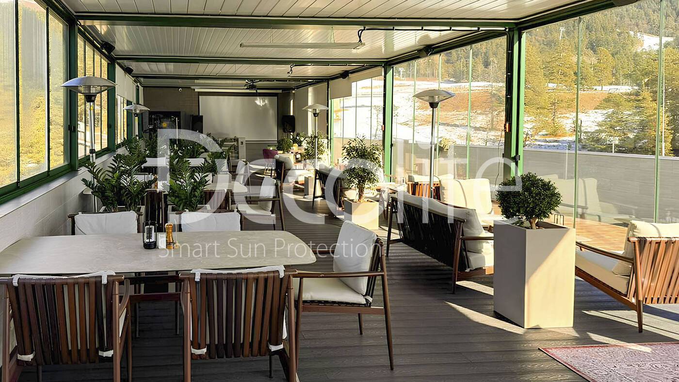 Decolife pergolas B500-25P, B600 PIR + sliding glazing S200
