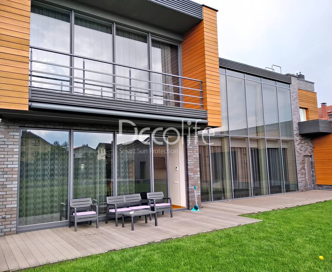 Main advantages: closed body, increases the service life by 3 times, protecting the fabric and the sliding mechanism from damage, dust and moisture. Silent automatic control of the electric drive, gives additional comfort and pleasure from using the system.