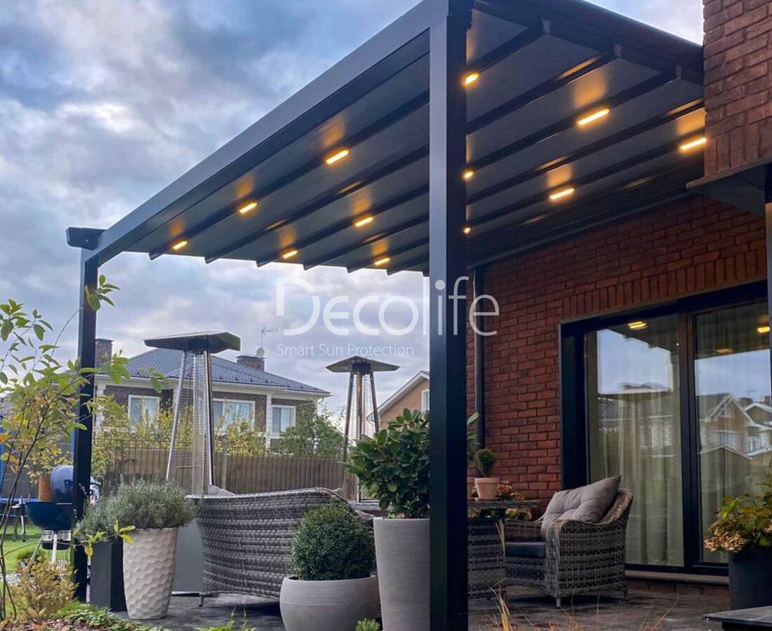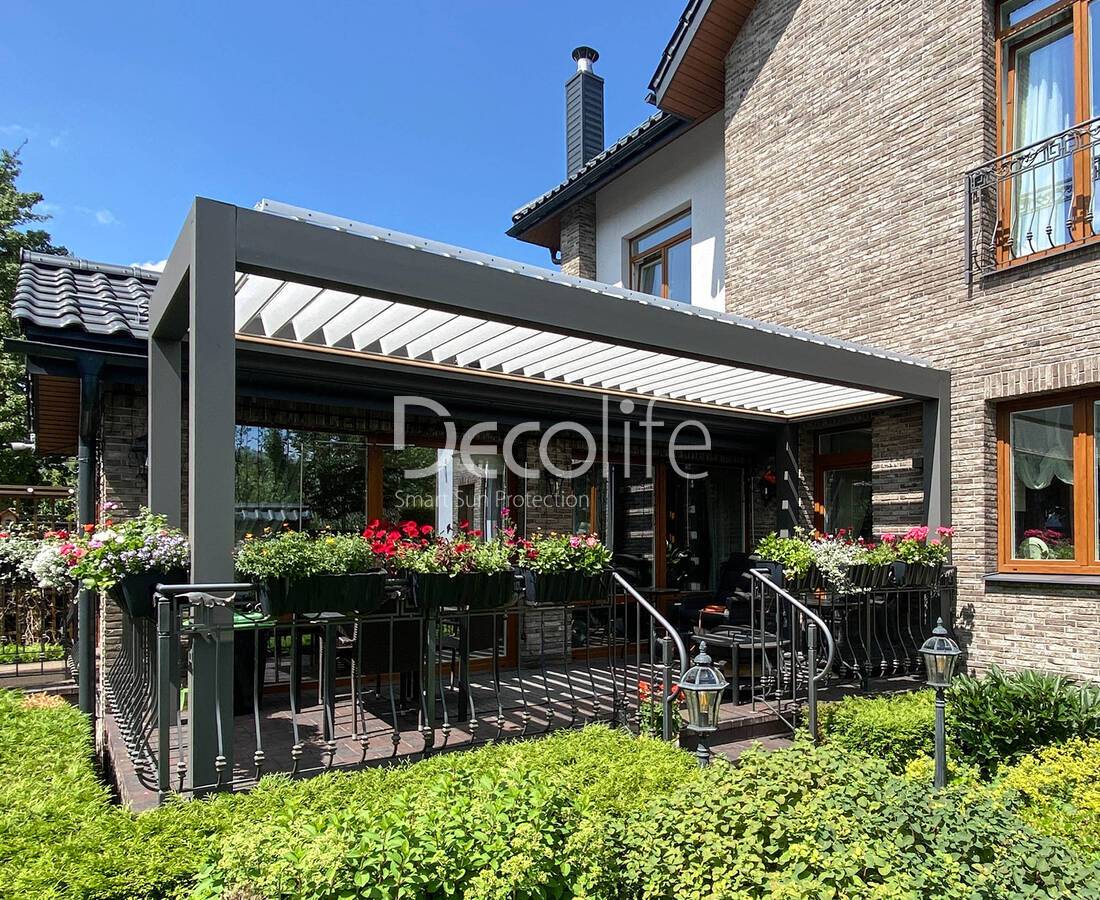 Their task is to create an ideal microclimate. Bioclimatic pergolas come with sliding and turning slats, as well as with PIR sandwich panels.