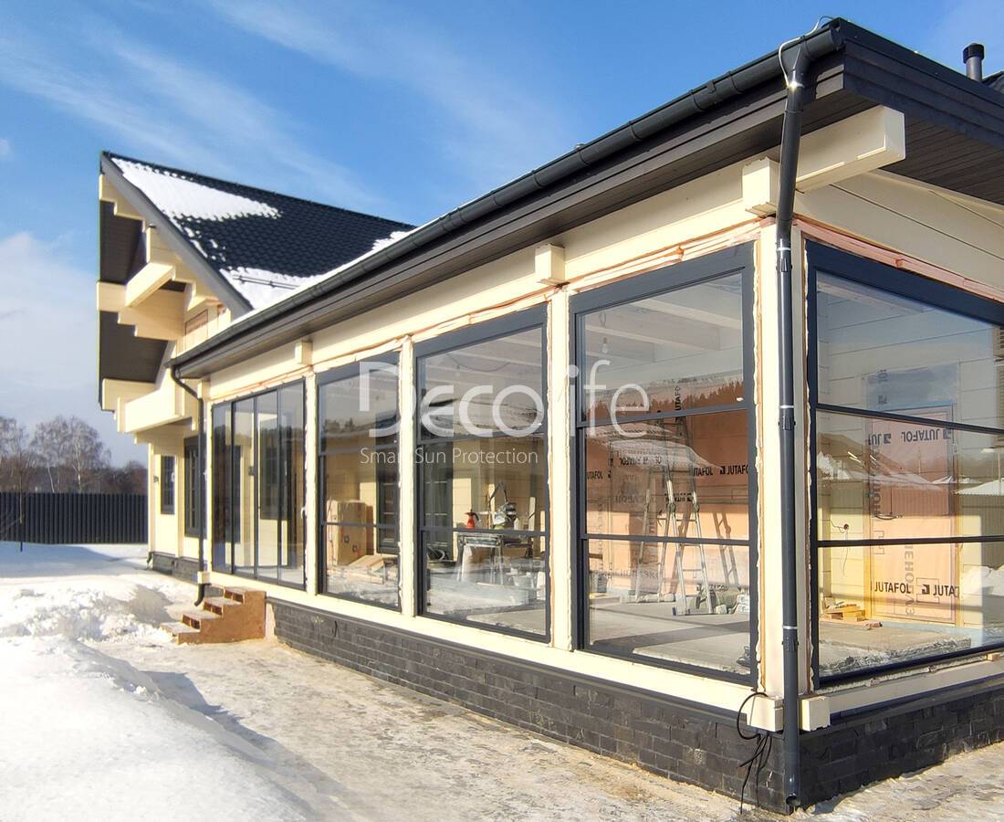 Guillotine glazing with thermal break (W700 Guillotine) - is an excellent protection not only from wind and rain, but also from the cold, this system is suitable for heated residential and commercial premises.