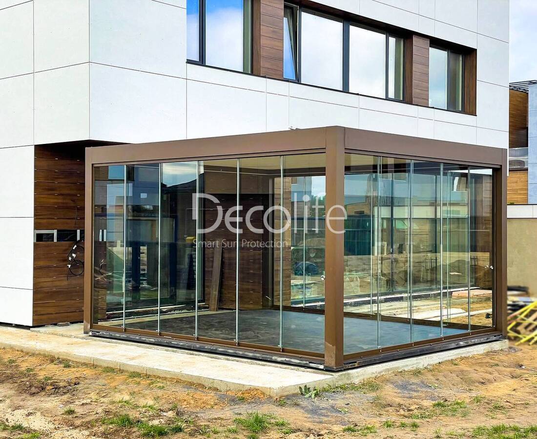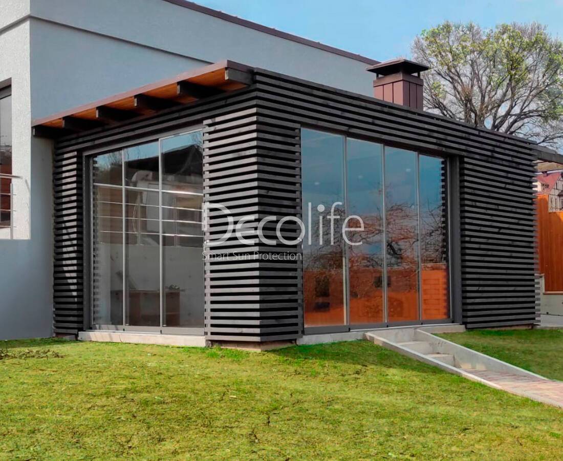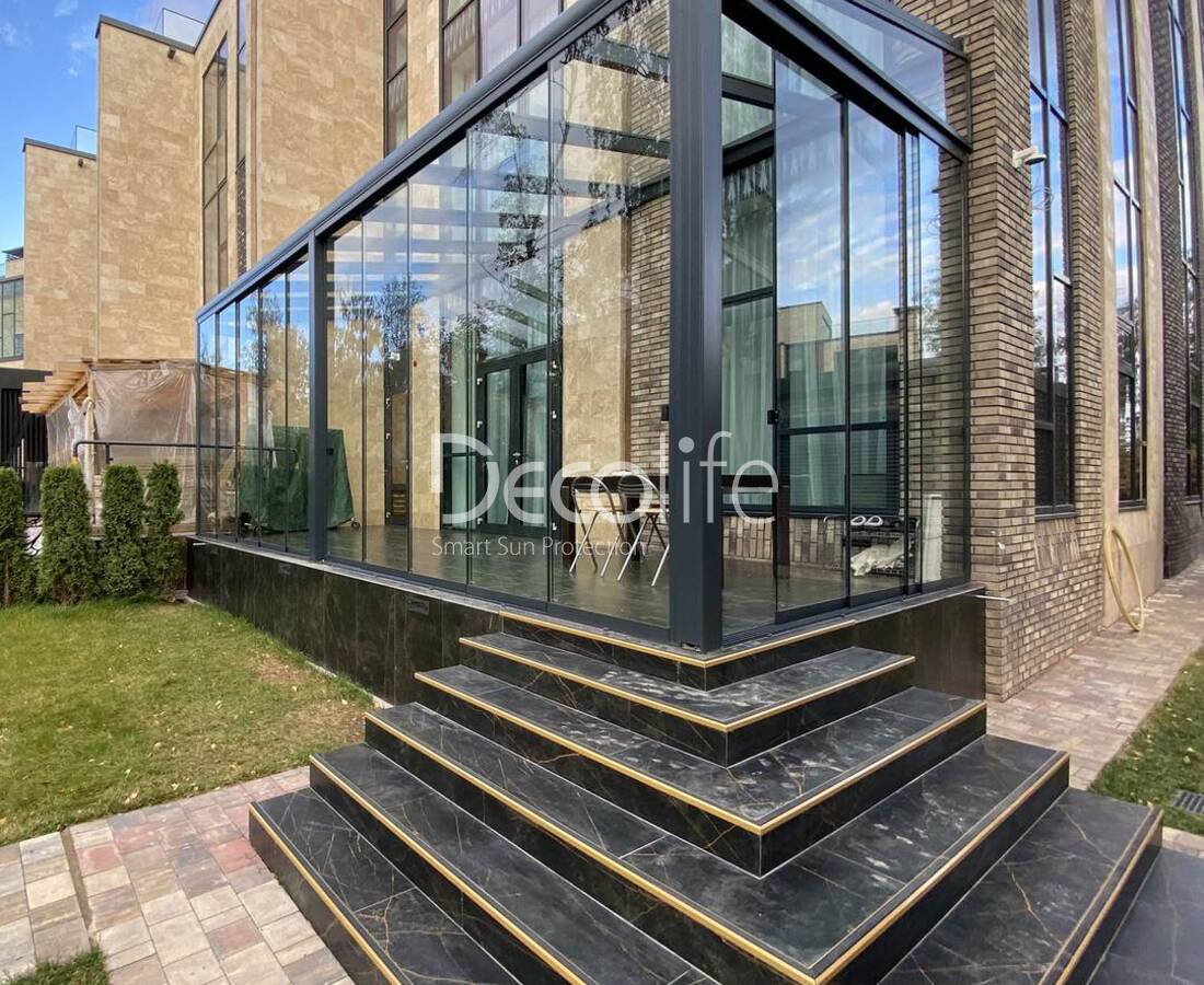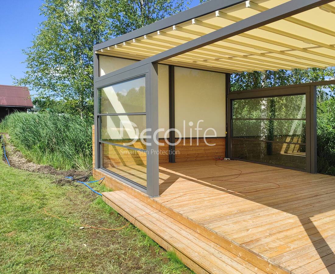 The recommended panel height is 3 meters, the maximum number of glass panels is 12 pcs. Compatible with the entire Decolife range of pergolas.